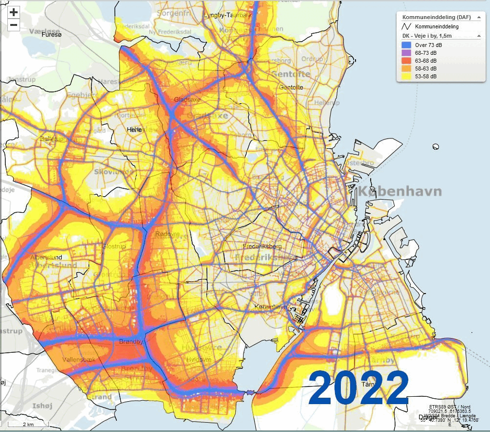 Vejstøjens udvikling over 15 år afslører at alle Københavns omegnskommuner lider under stigende støj, mens de centrale kommuner er sluppet fri.